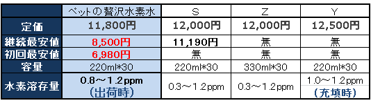 同じペット用の水素水でも水素の量も異なります。高濃度を謳った商品でも別の商品と比べてみるとそれよりもかなり低いというような商品もあります。
